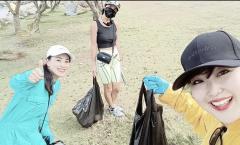 目標だったタイでの清掃活動に参加したぴよまるさん(右)